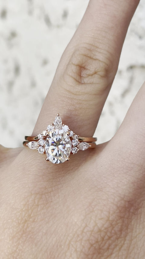 3.00 CTW E VS1 oval lab grown diamond wedding set east west marquise band