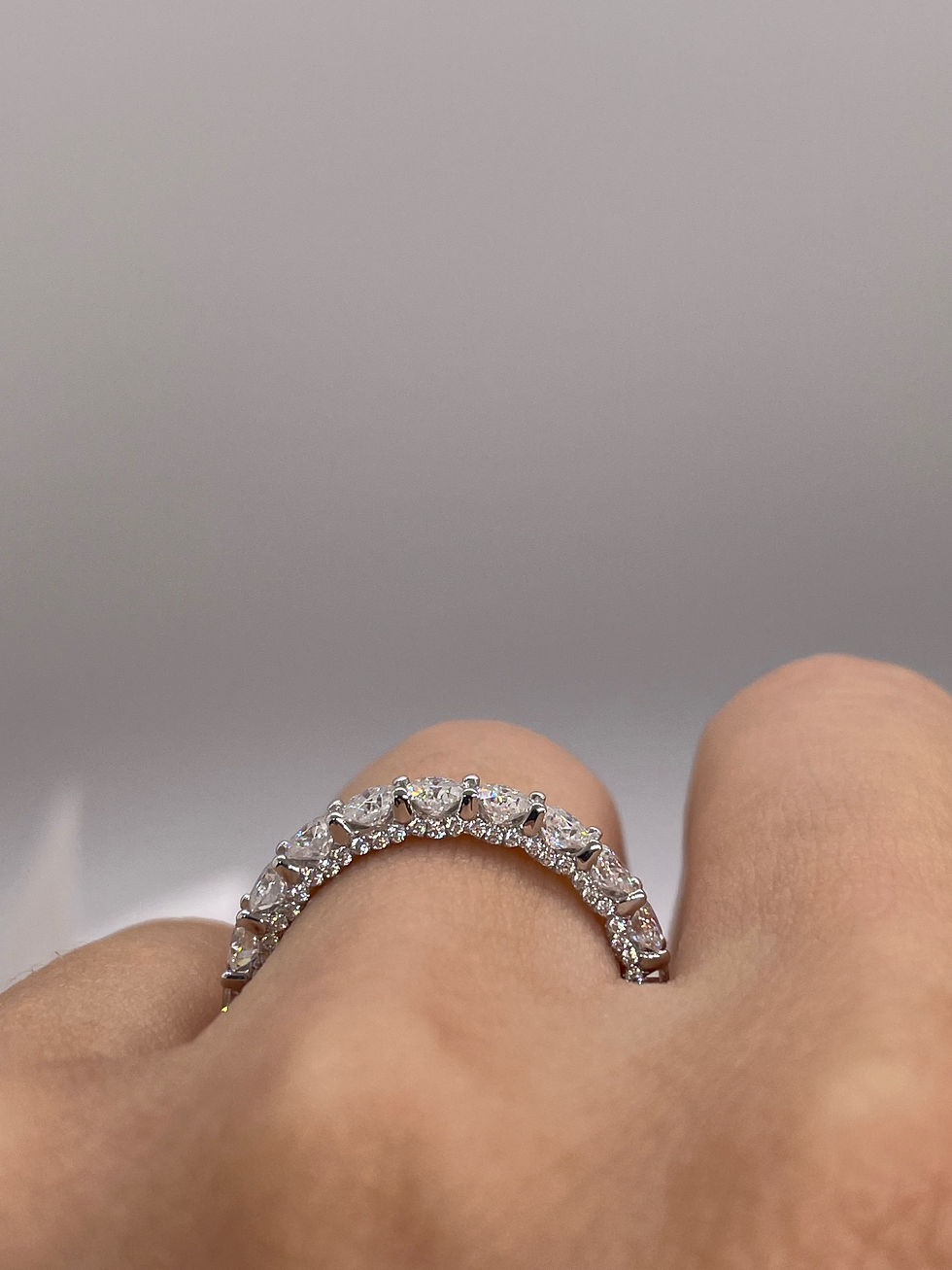 3 carat pear moisssanite with 3mm round pavé band with matching eternity band