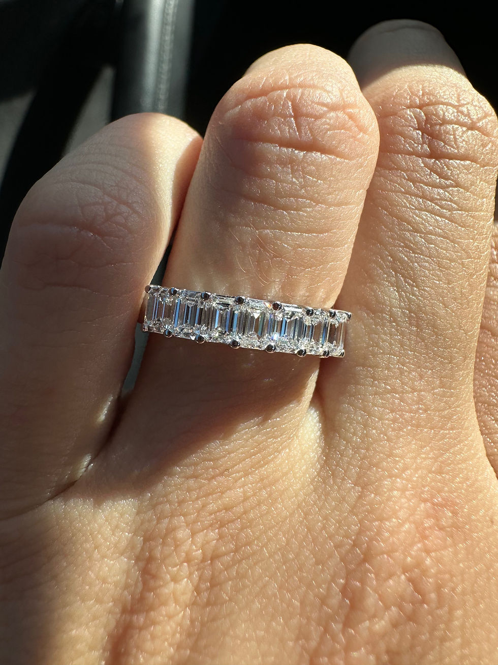 Emerald cut bezel 3/4 eternity band
